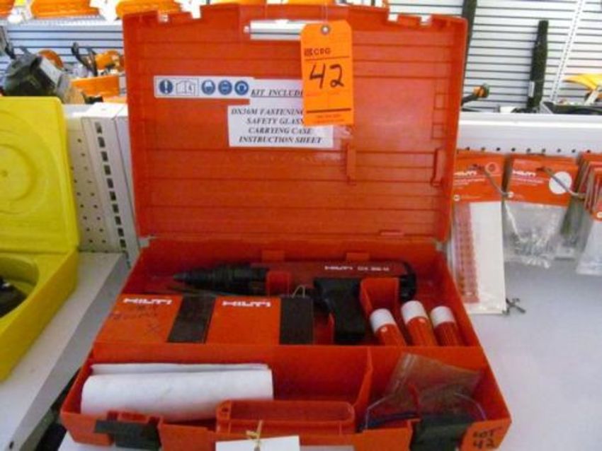 set gun, (3) cans spray, cleaning brushes, safety glasses with case, (22) packages #2 nails, (10) packages #10 nails, (12) packages 22 cal power actuators
