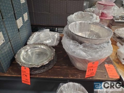 - Large assortment stainless steel chaffing dishes, serving utensils, trays, tray stands, serving dishes, beverage dispensers, pitchers, punch bowls, candelabras, and more