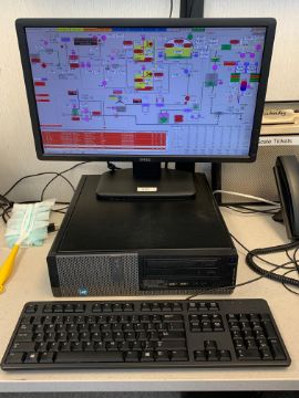 Assorted desktop computer equipment including (2) Dell Optiplex 3010 computers with keyboards and monitors, (1) Acer PC with keyboard, monitor, and Topaz digital signature pad, (2) ThinkStation P320 Tiny desktop CPUs (new in boxes), assorted UPS(s), LCD flat screen wall hung monitor (LATE DELIVERY - APPROXIMATELY NOVEMBER 15, 2020)