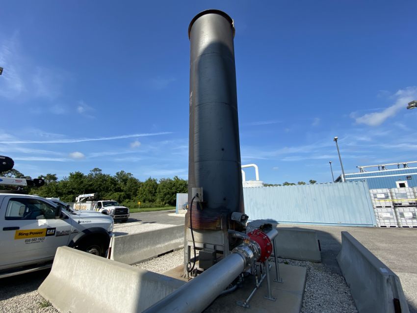 Stainless steel flare, 42" diameter X 24' high with assorted valves, Protego FA-1 -300/150 deflagration flame arrestor, electonics, and related equipment