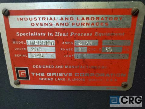 Grieve FMPC-8126 furnace, 8 X 6 X 12 inch capacity, 2000 degree max, 208 volt, 3 phase(LOCATED ON 1ST FLOOR PRODUCTION AREA) - RIGGING FEE: $250.00-WILL AUTOMATICALLY BE ADDED TO THE INVOICE