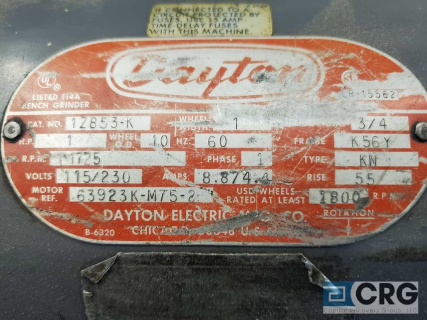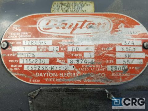 Dayton 10 inch D.E. pedestal grinder, 1 HP, 1725 rpm, 1 phase (LOCATED IN TOOL ROOM MACHINE SHOP) - RIGGING FEE: $75.00-WILL AUTOMATICALLY BE ADDED TO THE INVOICE