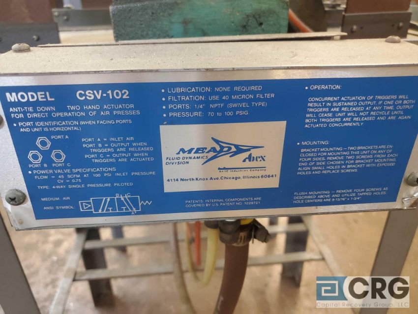 Mead CSV-102 sample press with pneumatic control (LOCATED IN TOOL ROOM MACHINE SHOP) - RIGGING FEE: $150.00-WILL AUTOMATICALLY BE ADDED TO THE INVOICE