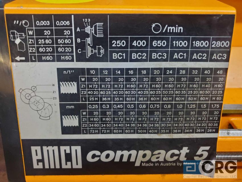 Emco COMPACT 5 table top mini lathe, 6 X 14 inch BC, 1 phase (LOCATED IN TOOL ROOM MACHINE SHOP) - RIGGING FEE: $100.00-WILL AUTOMATICALLY BE ADDED TO THE INVOICE