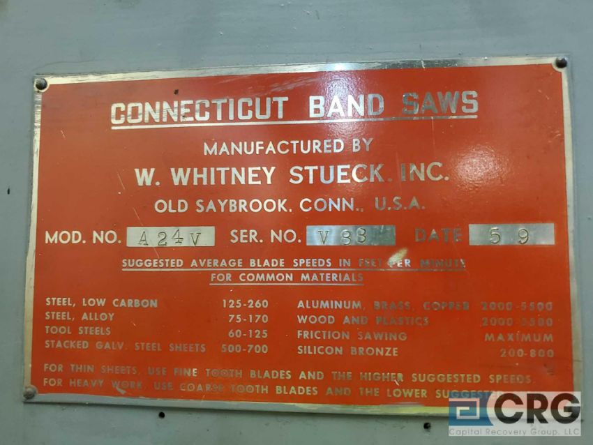 Whitney Stueck A24V vertical bandsaw, 24 inch throat, 3 phase with MSC 9514738 saw blade welder / sharpener (LOCATED ON 1ST FLOOR PRODUCTION AREA) - RIGGING FEE: $150.00-WILL AUTOMATICALLY BE ADDED TO THE INVOICE