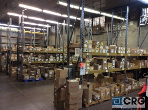 Lot of (17) sections Auto Lok 14 foot pallet racking consisting of (24) 14 foot high X 24 inch deep X 1 1/2 X 3 inch uprights, (114) 96 inch X 3 1/2 cross beams and wood decks (LATE PICKUP AFTER RACKING IS EMPTY) (LOCATION: 2ND FLOOR) - RIGGING FEE: $950.00-WILL AUTOMATICALLY BE ADDED TO THE INVOICE