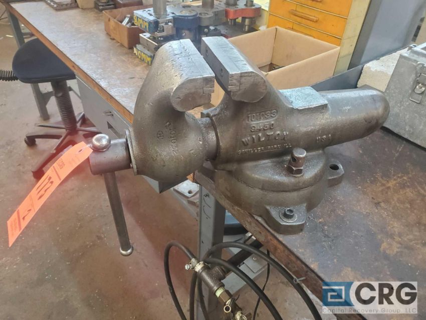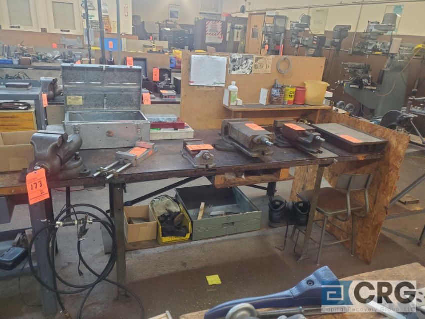 Lot of (2) work tables with Wilton bullet shaped vises LATE PICK UP (LOCATED IN TOOL ROOM MACHINE SHOP) - RIGGING FEE: $50.00-WILL AUTOMATICALLY BE ADDED TO THE INVOICE