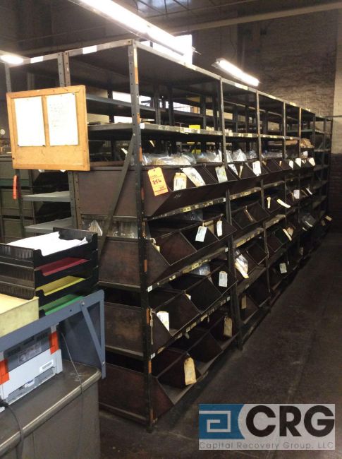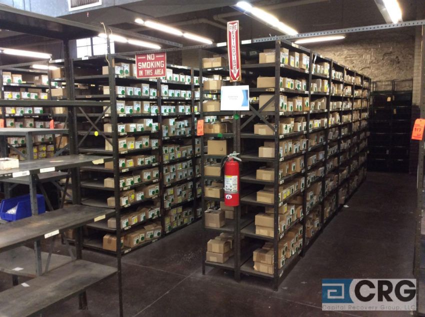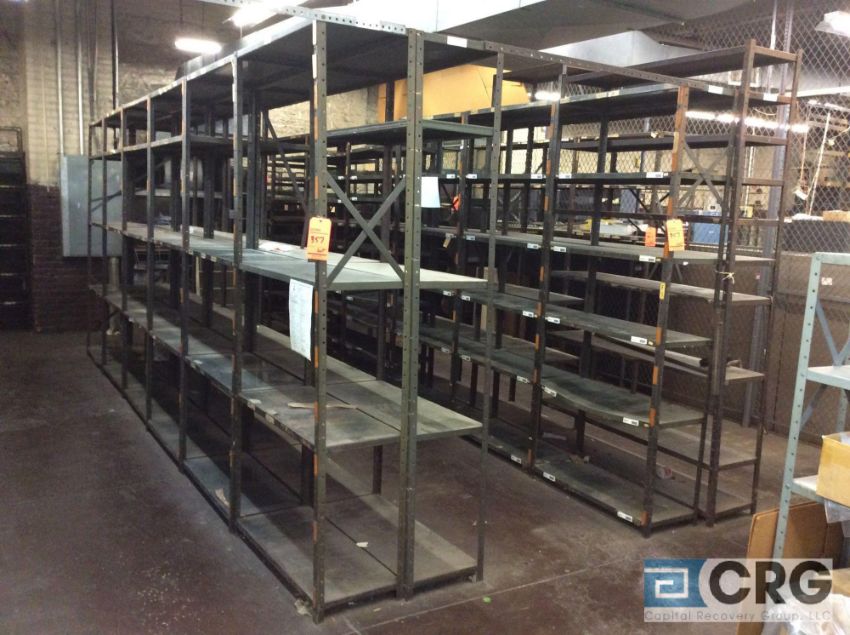 Lot of adjustable metal shelving, 4 feet wide X 12 and 18 inch deep X 7 feet high TOTAL OF 84 SECTIONS, LATE REMOVAL AFTER SHELVES HAVE BEEN EMPTIED (LOCATION: 2ND FLOOR) - RIGGING FEE: $200.00-WILL AUTOMATICALLY BE ADDED TO THE INVOICE
