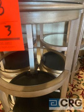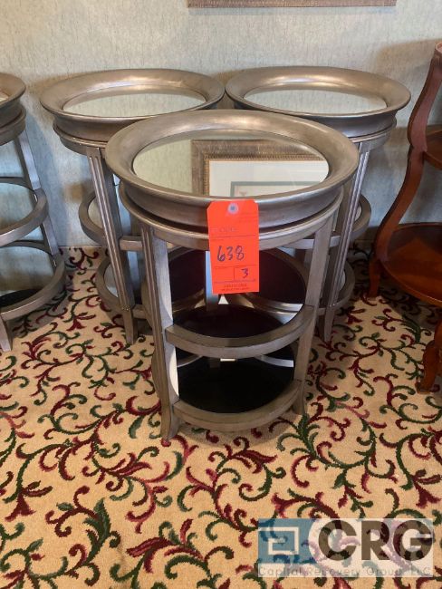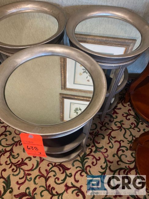 Lot of (3) reflective surface, 3-tier metal side-tables