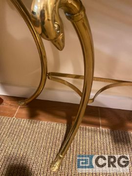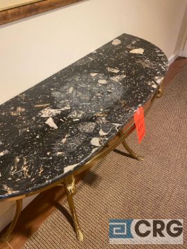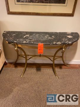 Half-moon stone-top table with decorative metal legs