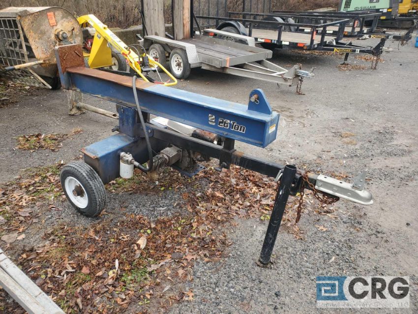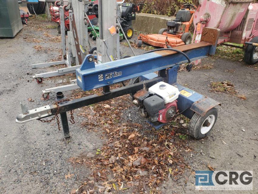 Iron and Oak tag-a-long hydraulic log splitter 26 ton, with Honda gas engine (FOR PARTS OR REBUILD, MISSING SPLITTER EDGE AND HYDRAULIC PISTON)