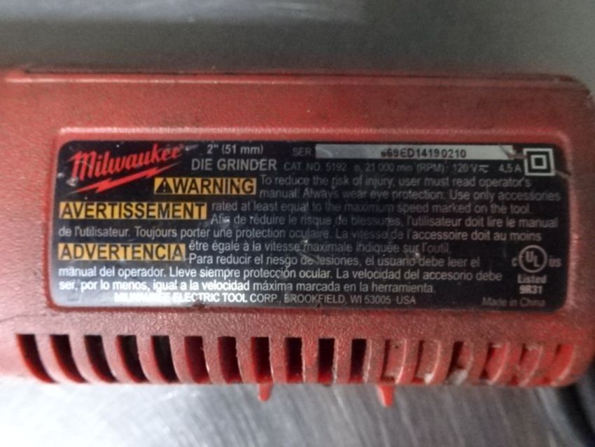 Milwaukee 2 inch Die Grinder 120 v, 4.5 AMPS S/N 669ED14190210