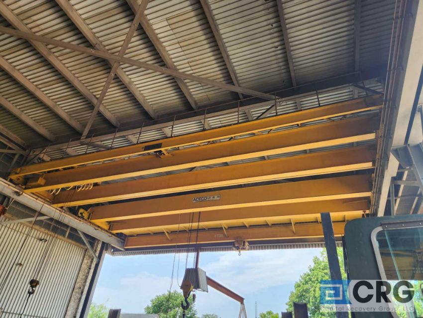 Wright 10 ton double girder top running bridge crane, 48 ft span with pendant controls, 20000 lb electric hoist (OUTSIDE CRANE LINE)