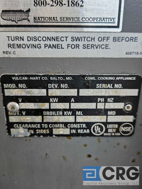 Vulcan 6 burner electric Convection oven m/n VR4, s/n 481401696, 3 phase, (LOCATED AT PEEKSKILL)