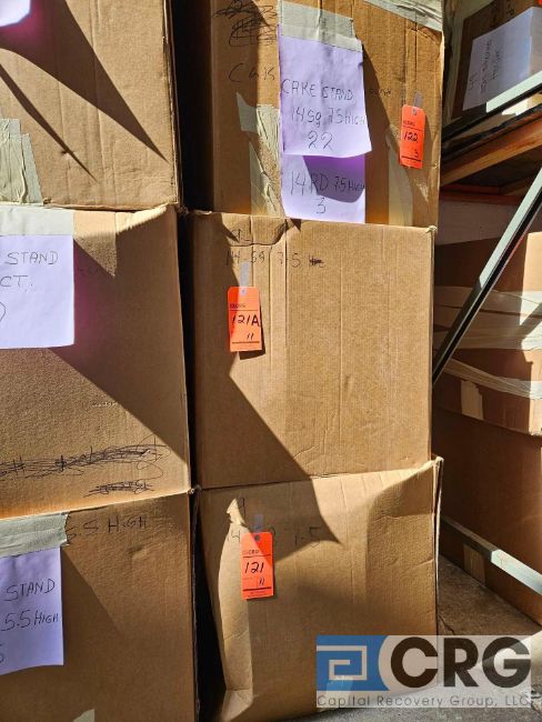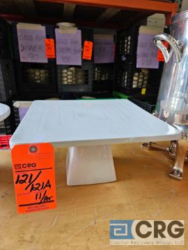 Lot of (11) 14 inch X 14 inch white square porcelain cake stands 7 1/2 inches (H) (PORT CHESTER LOCATION)