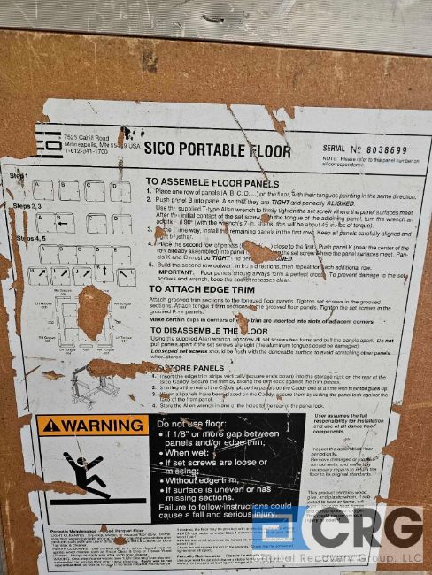 Lot of (56) panels, SICO portable dance floor (3X3 sections), B grade, 21 feet X 24 feet, trim and corners included (PORT CHESTER LOCATION)