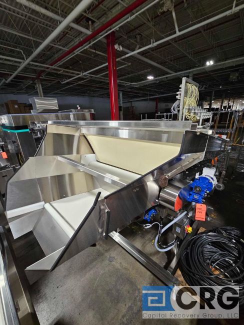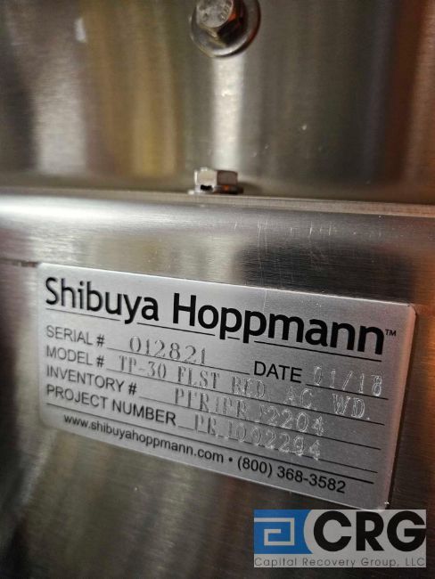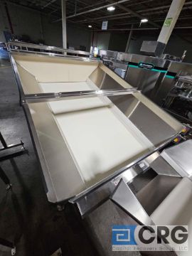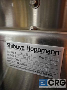 Shibuya Hoppman m/n TP-30 FLST BED AC WD, s/n 012821,stainless trough fragile parts pre-feeder, 30 cubic ft capacity 9 feet X 41 inches