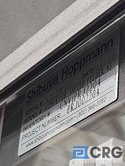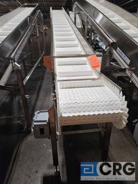Shibuya Hoppman conveyor system, Intralox segmented over stainless steel incline belt conveyor, s/n 012898, 21 feet X 16 inches, 3 phase