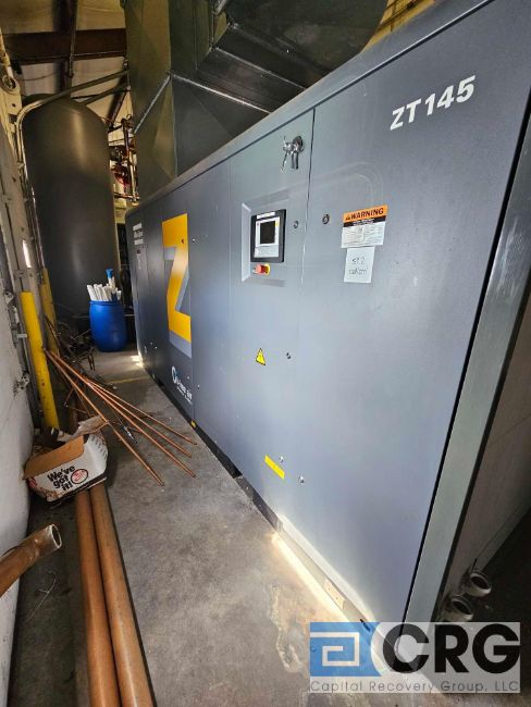 2018 Atlas Copco Model ZT145-8.6, Oil Free, Air Cooled, Fixed Speed, Rotary Screw Compressor, 200 HP TEFC High Efficiency Drive Motor (460/3/60), Elektronikon MK5 Graphic Plus Controller, Electronic Condensate Drains, S/N (Motor needs repair)