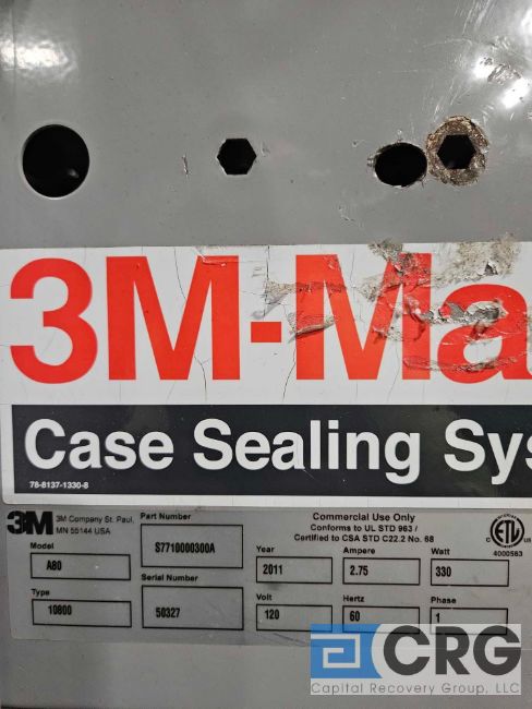 3M-MATIC case sealing system m/n A80, s/n 50327, adjustable width tape machine, 1 phase, 60 inches X 32 inches