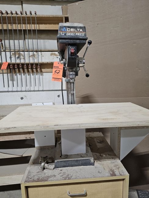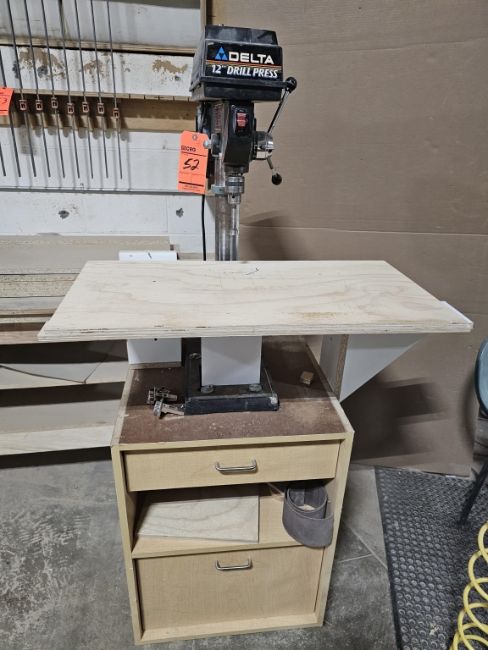 Delta Model 11-990 12" Drill Press sn W0049 With Custom Stand And Misc Drill Bits and Tooling