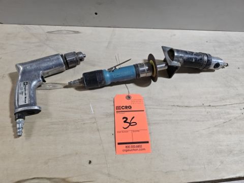 Pneumatic Tool Lot Including Ingersoll Rand 7801 Drill, Dynabrade Model 62062 Dyninger 3400 RPM Light Weight Finishing Tool, and B Pneumatic Model DG-14 Pneumatic Finishing Tool