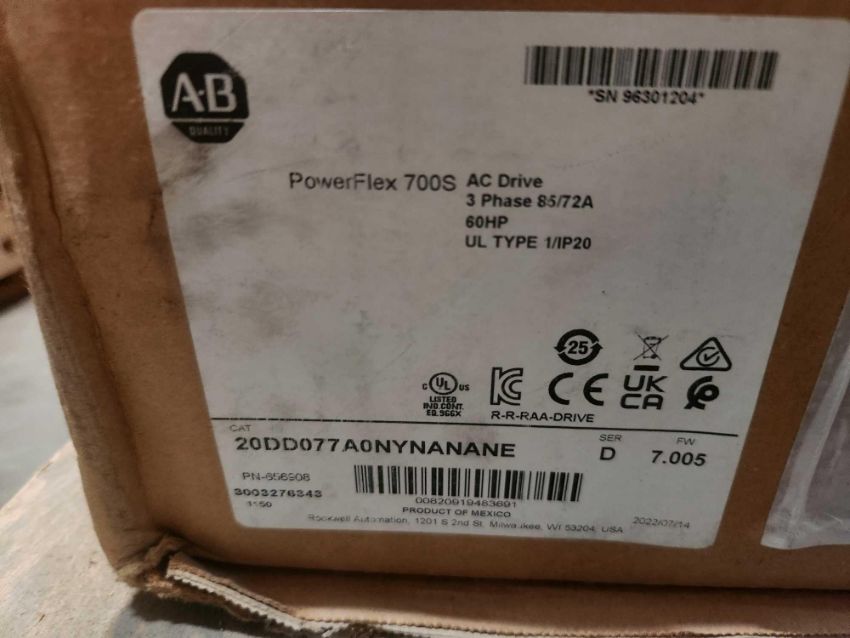 Allen Bradley 20DD077AONYNANANE Power Flex 700S drive, 60 hp, 3 phase (MAIN FLOOR) [Lot loading fee of $25 per pallet applies. Total fee of $25 will be added to your invoice.]