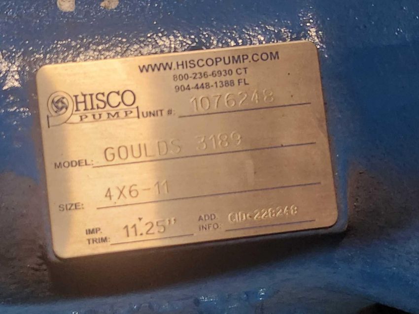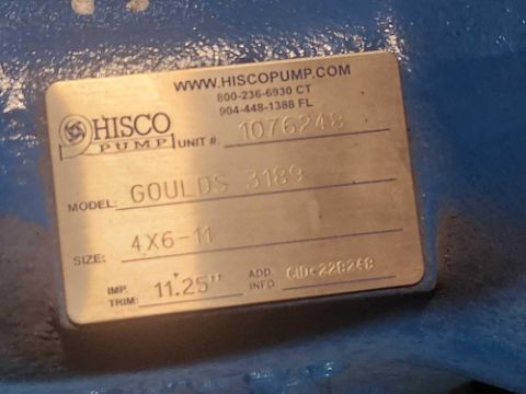 Goulds 3189 pump, 4 X 6-11, 11.25 inch impeller (AF6304) [Lot loading fee of $25 per pallet applies. Total fee of $25 will be added to your invoice.]