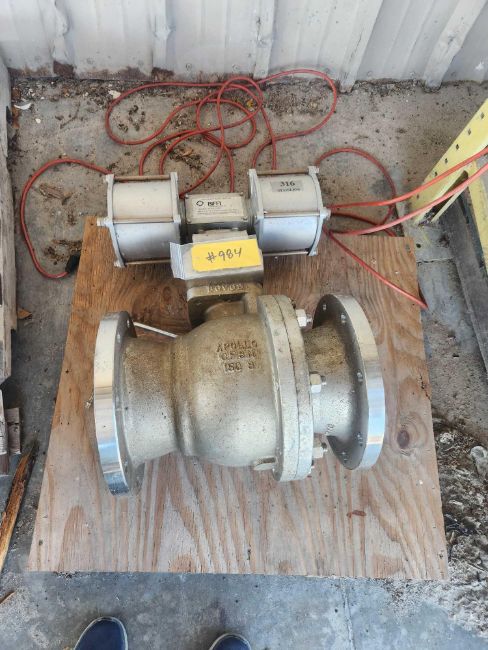 Appollo 8 inch stainless steel ball valve with actuator (BACKSIDE OF OVERHANG) [Lot loading fee of $25 per pallet applies. Total fee of $25 will be added to your invoice.]