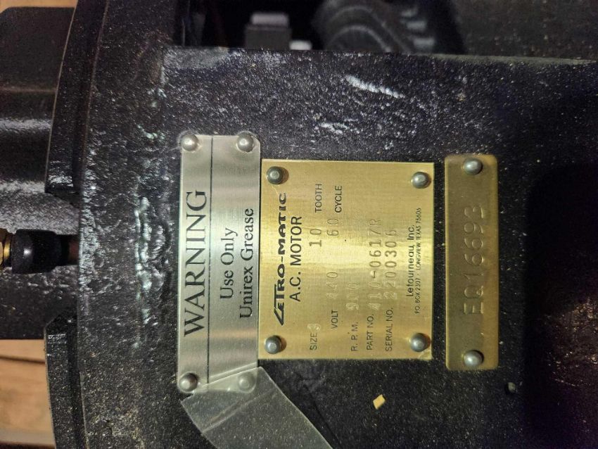 Letourneau 410-0617R motor, size 3, 900 rpm, 440 volts, 10 tooth (AA0308) [Lot loading fee of $25 per pallet applies. Total fee of $25 will be added to your invoice.]