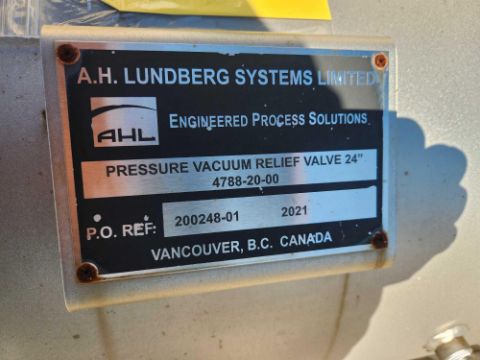 Lundberg 24 inch pressure vacuum relief valve, 4788-20-00 (OUTSIDE ALONG WALL)