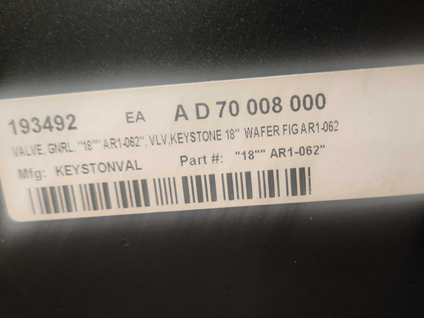 Keystone 18 inch butterfly valve with actuator, (BACK WALL ROW) [Lot loading fee of $25 per pallet applies. Total fee of $25 will be added to your invoice.]