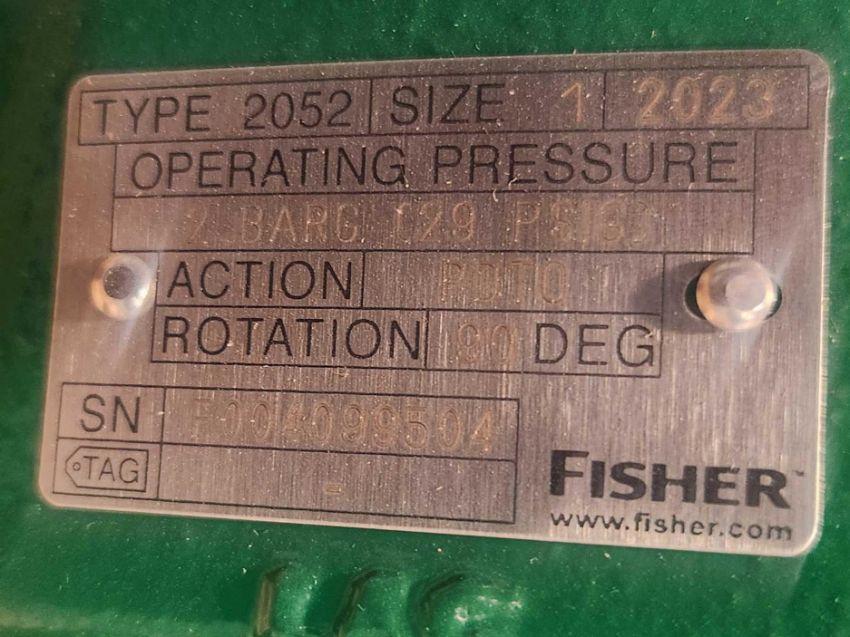 Fisher 4 inch butterfly valve with actuator, mn 2052 (BACK WALL ROW) [Lot loading fee of $25 per pallet applies. Total fee of $25 will be added to your invoice.]