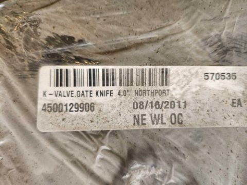 Delta 4 inch pneumatic guillotine valve. BACK WALL ROW) [Lot loading fee of $25 per pallet applies. Total fee of $25 will be added to your invoice.]