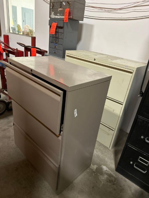 Lot of (3) lateral storage cabinets, including 3 drawer 3ft x 18 x 41, 3 drawer 30 x 18 x 41, 4 drawer 3ft x 19 x 54  (616 Corporate Way Suite 2 Valley Cottage NY)