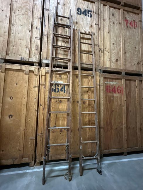 Lot of (2) wooden ladders, including (1) 21 foot wood extension, (1) 11 foot basic ladder (616 Corporate Way Suite 2 Valley Cottage NY)
