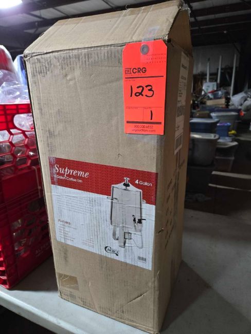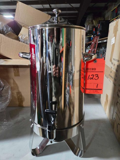 Supreme stainless steel 4 gallon coffee dispensers, (NEW IN BOX)