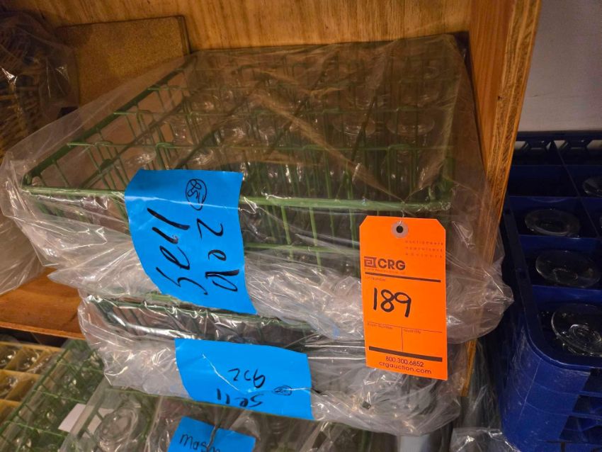 Lot of (40) 9 ounce balloon glasses with 2 racks, additional $5 fee per rack, (DOLLY NOT INCLUDED)
