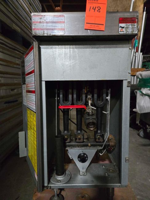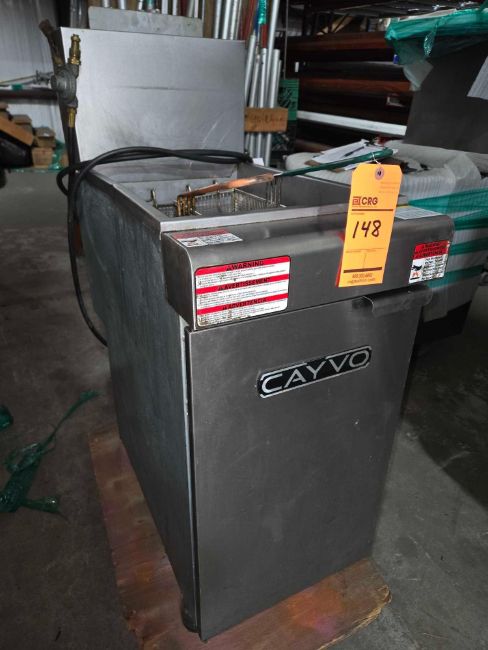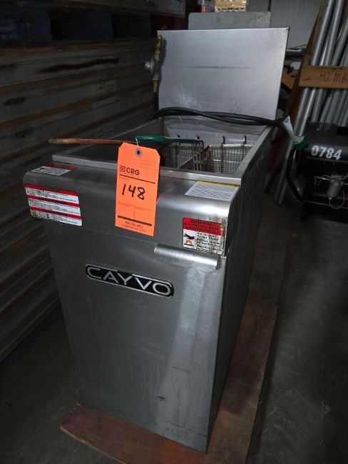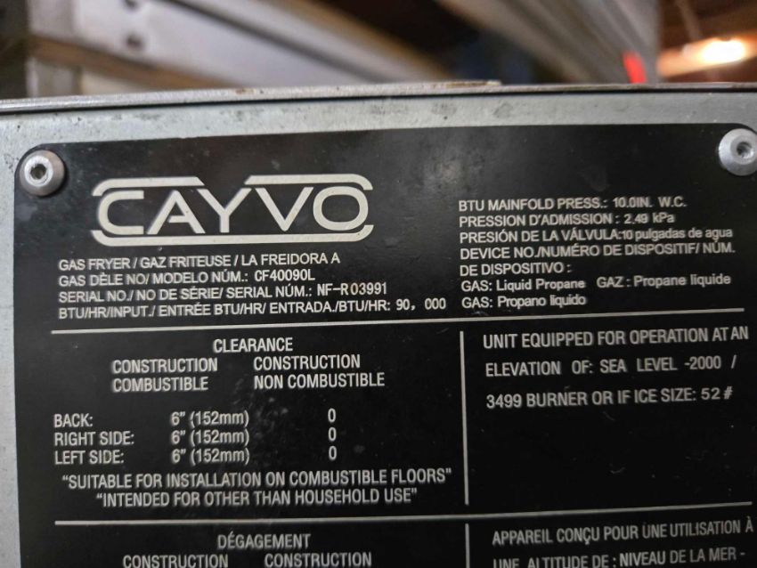 Cayvo 2 basket gas frialator m/n CF40090L, s/n NF-R03991, 90,000 BTU,