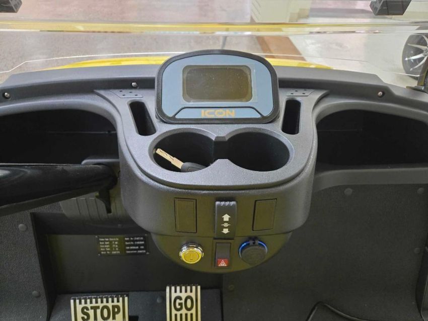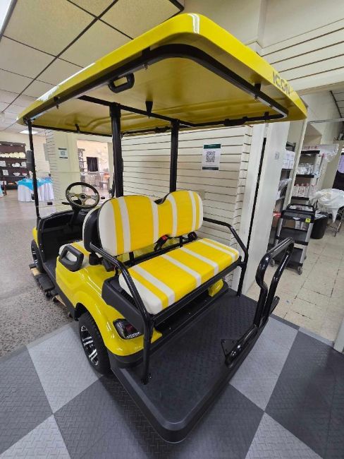 2024 ICON Golf Cart, Model i40, Yellow, Standard Height, 4 Passenger/Utility bed, Leather yellow/white stitch seats, Digital display, Long roof, Fold down plexiglass front window, Road Ready, AGM Batteries, S/N LT-A0128644, and (2) keys, Charger, and Certificate of Origin - Located at 304 Boston Post Road, Orange CT (NEW)